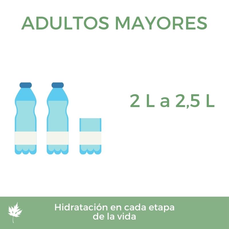 El agua es esencial para el buen funcionamiento del organismo. Y en el caso particular del adulto mayor, es un elemento crítico a cuidar ya que ellos tienen un menor porcentaje de agua corporal que los jóvenes (50% del peso corporal total) y por lo tanto son más susceptibles a una deshidratación.